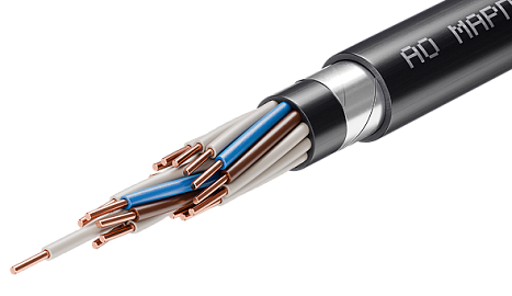 Кабель с медными жилами, с изоляцией и наружной оболочкой из полимерной композиции, не содержащей галогенов, не распространяющий горение по категории А, с медным экраном под наружной оболочкой